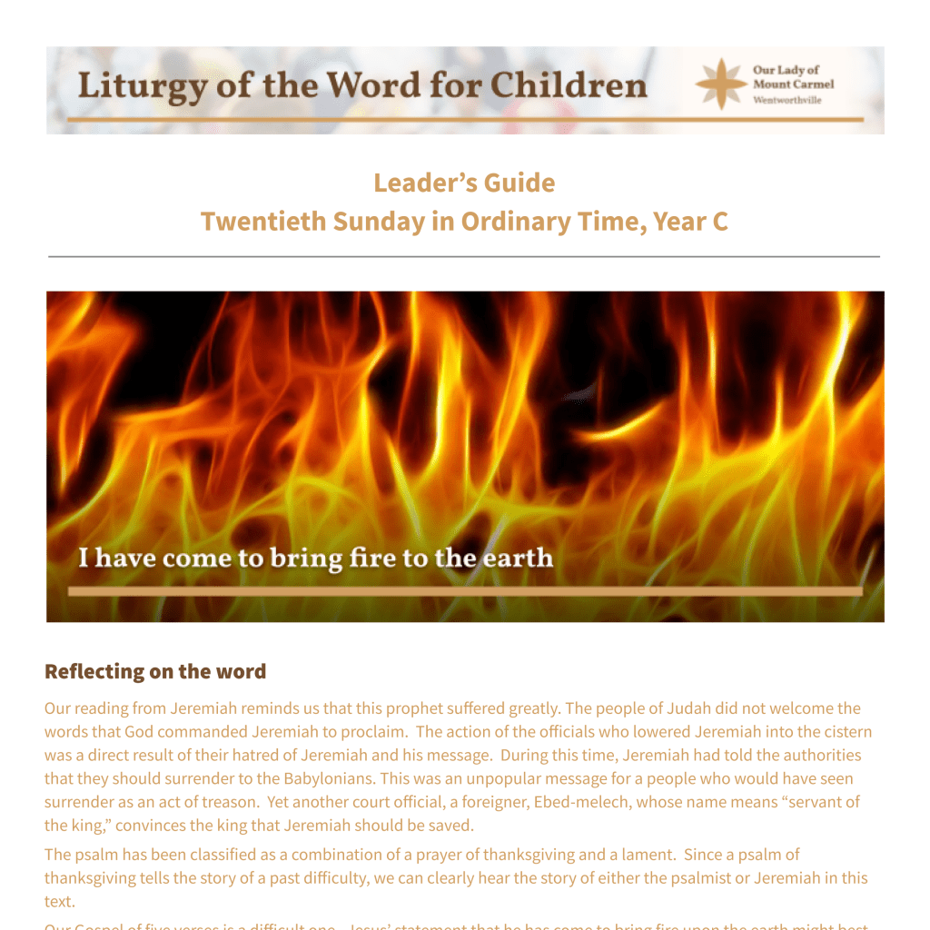 Good Ministers of Children’s Liturgy of the Word need to know the structure and importance of the Liturgy of the Word at Mass, be able to communicate to the children at their level, and to maintain the reverence of the liturgy. They also need to be able to work as a member of a team.
